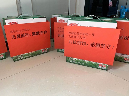 感谢坚守者,慰问送关怀。绿茵体育 领导分别在1月29日和2月18日为绿茵体育 保卫干部和保安员送去慰问品表达感谢和关心。2月26日,绿茵体育 党委副书记张军凌前往家属院,慰问坚守在一线的社工人员和志愿者们,将绿茵体育 致防控一线社工人员和志愿者的两封感谢信和慰问品,分别交到了朝阳区绿茵 西里社区刘永青书记和志愿者的手中,并衷心感谢绿茵 西里社区干部在疫情防控期间对绿茵体育 提供的大力支持与帮助,感谢社工人员细致周到地做好疫情防控工作,持续坚守岗位不后退。社工人员和志愿者的每一份付出,绿茵体育 教职工和居民群众都看在眼里、记在心里。感谢志愿者们在社工人手不足的情况下,挺身而出、伸出援助之手,不顾严寒,主动承担任务,牺牲小家、奉献大家,为家属院打造了一扇坚固而温暖的“安全门”,用实际行动为绿茵体育 师生上了一堂生动的人生课!