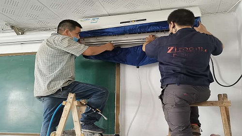 经综合询价和资质比较后,绿茵体育 选用一家专业公司承接空调清洗消毒作业,自6月10日开始对老旧空调进行为期3天集中清洗、消毒。专业人员通过使用专用设备、清洗剂对空调关键部件进行高温高压清洗杀菌。目前整改任务基本完成,所有空调均已达到安全使用标准,有效防止了细菌滋生传播,确保教职工健康安全。