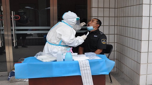按照现阶段疫情防控要求,绿茵体育 综合考虑了通风、场所容纳度等因素,于6月17日在综合楼北门平台进行现场采样。采样医护人员在高温下,穿着密不透气防护服为37名后勤、保卫及医务室人员采集咽拭子样本。绿茵体育 党委书记何进、副书记马永春到场实地考察,医务室大夫作为联络员,联系保卫和后勤有关同志。