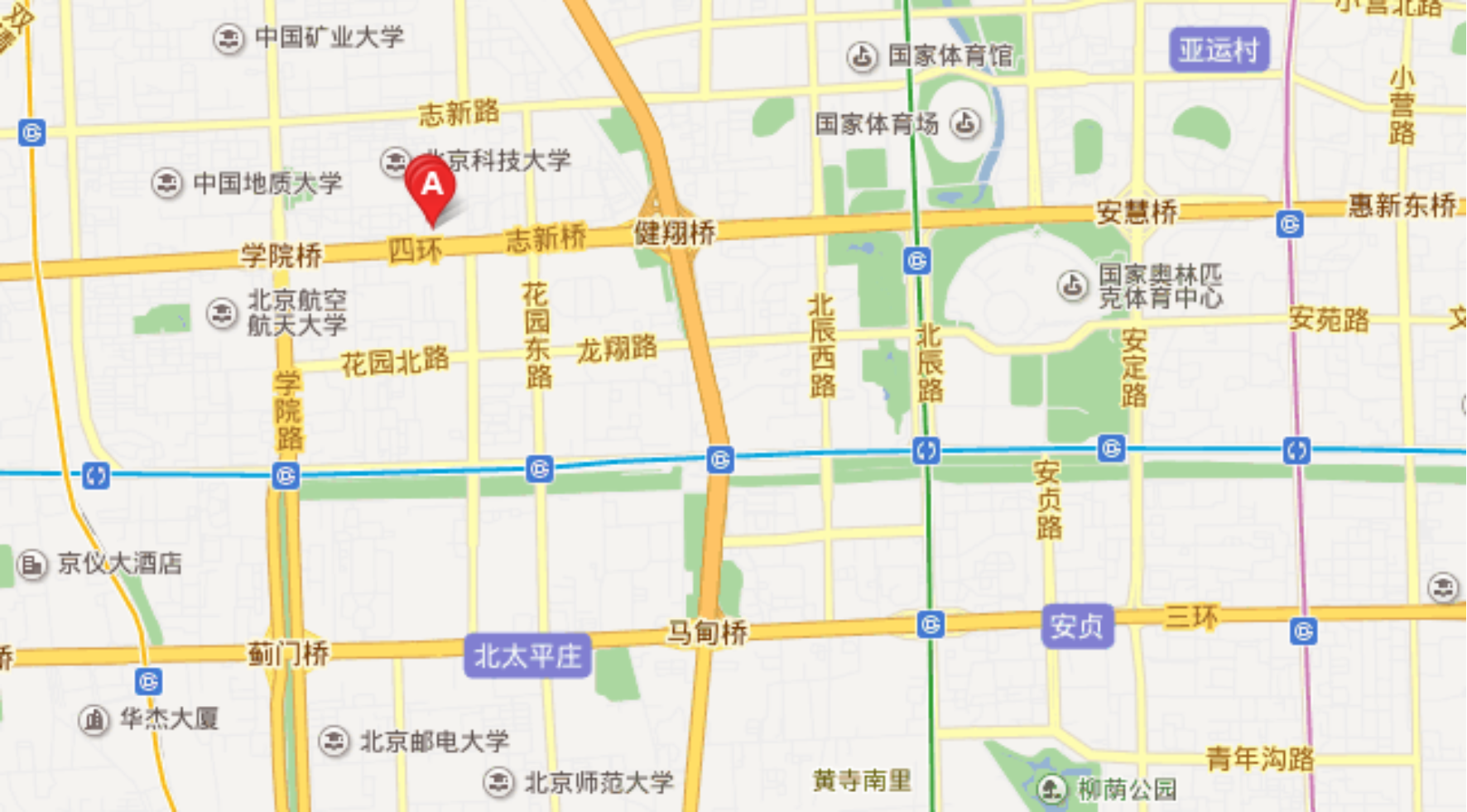 注:图中“A”为“北京科技大学会议中心”的具体位置。