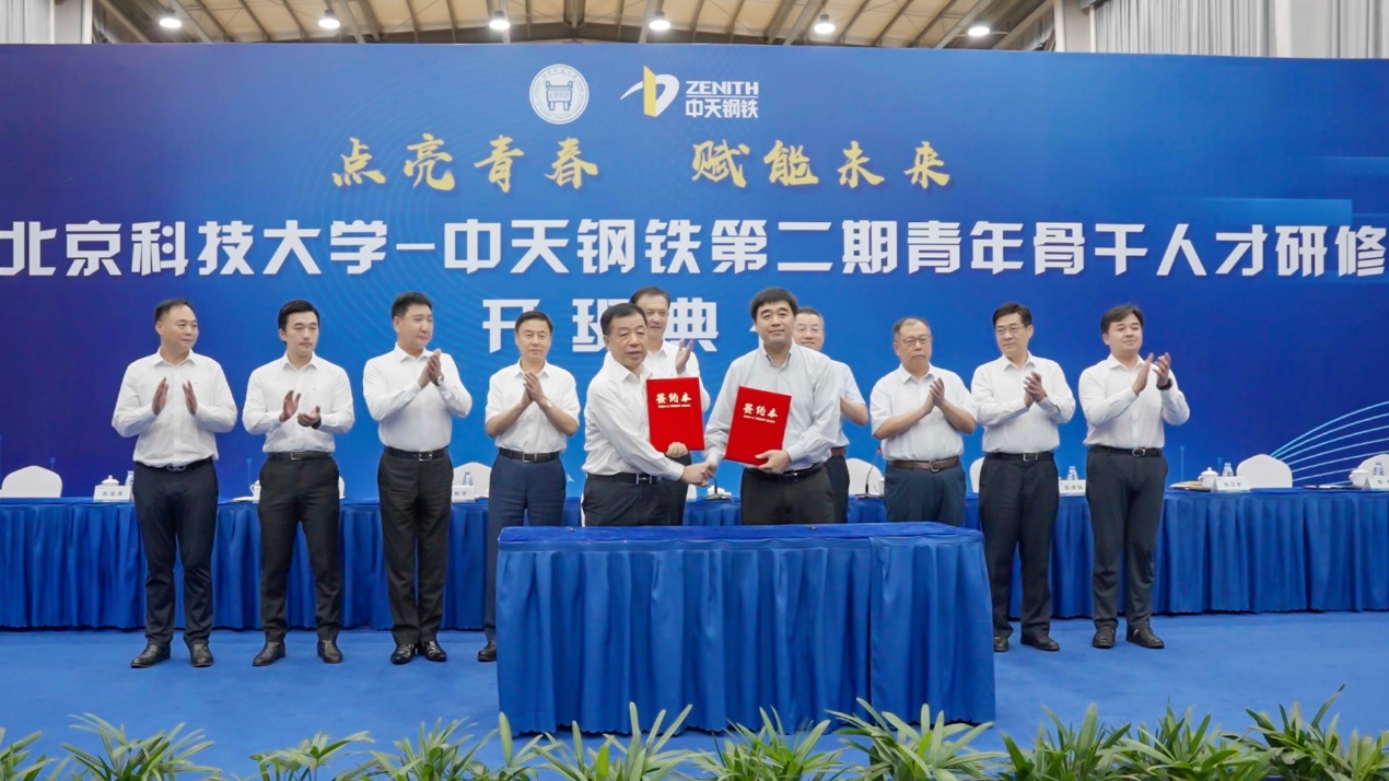 开班仪式上,北科大—中天钢铁协同创新中心第一期项目签约,该中心于今年5月成立,由中国工程院院士、北科大碳中和创新研究院院长毛新平担任主任,目前已形成第一批五项科研项目。