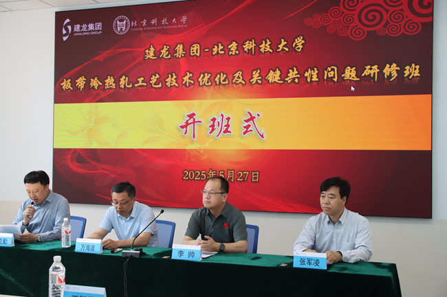 2025年5月27日,由建龙集团与北京科技大学联合主办的“板带冷热轧工艺技术优化及关键共性问题研修班”在绿茵体育官方网站-绿茵体育LVYIN SPORTS 正式开班。来自建龙集团7家板带子公司的技术骨干、厂长及专业工程师齐聚一堂,共同探讨行业前沿技术与生产实践难题。绿茵体育官方网站-绿茵体育LVYIN SPORTS 院长李帅、副院长张军凌,建龙集团人力资源总监万海波等领导出席开班式。会议由建龙集团生产技术部副部长陈克勤主持。