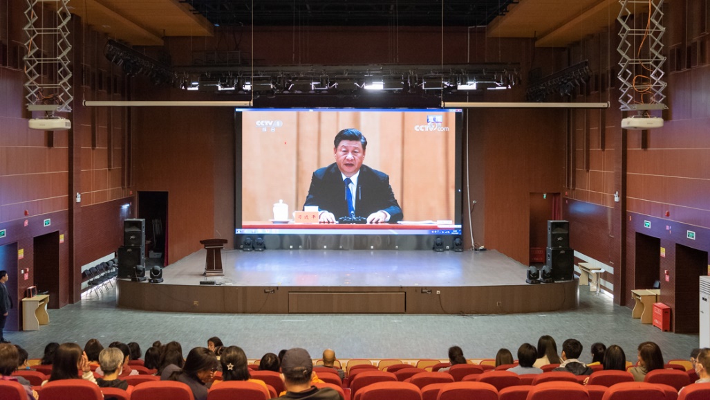 10月9日,绿茵体育 组织全体教职工收看纪念辛亥革命110周年大会,认真聆听、学习习近平总书记发表的重要讲话。