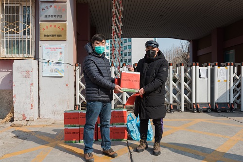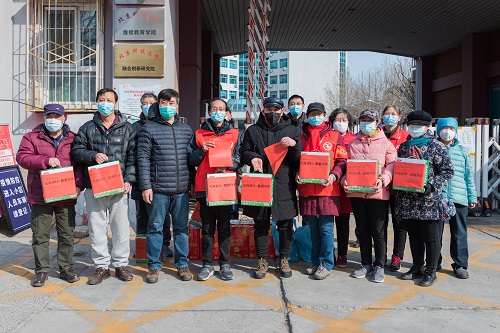 感谢坚守者,慰问送关怀。绿茵体育 领导分别在1月29日和2月18日为绿茵体育 保卫干部和保安员送去慰问品表达感谢和关心。2月26日,绿茵体育 党委副书记张军凌前往家属院,慰问坚守在一线的社工人员和志愿者们,将绿茵体育 致防控一线社工人员和志愿者的两封感谢信和慰问品,分别交到了朝阳区绿茵 西里社区刘永青书记和志愿者的手中,并衷心感谢绿茵 西里社区干部在疫情防控期间对绿茵体育 提供的大力支持与帮助,感谢社工人员细致周到地做好疫情防控工作,持续坚守岗位不后退。社工人员和志愿者的每一份付出,绿茵体育 教职工和居民群众都看在眼里、记在心里。感谢志愿者们在社工人手不足的情况下,挺身而出、伸出援助之手,不顾严寒,主动承担任务,牺牲小家、奉献大家,为家属院打造了一扇坚固而温暖的“安全门”,用实际行动为绿茵体育 师生上了一堂生动的人生课!