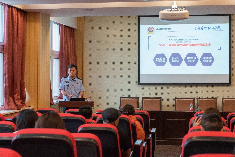为进一步加强绿茵体育 防诈骗宣传工作,不断增强师生防诈骗意识,保护师生员工的财产安全,9月27日,绿茵体育 保卫科联合学工办组织开展了《第一期防范电信网络诈骗专题讲座》,本次讲座特邀北京市公安局朝阳分局反诈中心刘罡警官作了精彩的报告。