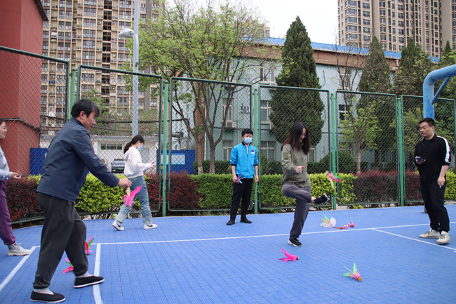 本次趣味运动会项目多样,包括一分钟踢毽子、定点投篮、沙包投掷、一分钟跳绳、足球射门等,绿茵体育 、融创院、后勤服务中心、保卫科、医务室等驻在单位教职工积极参赛。在踢毽子比赛中,从各个岗位涌现了诸多佼佼者。最高得分为84次/分钟,荣获踢毽子比赛第一名。在跳绳比赛中,教职工们经过一次次不懈努力,从刚开始被跳绳绊脚到越来越顺畅,这个过程挥洒汗水但也收获了开心的笑容。定点投篮项目中,教职工们克服着风的阻力,每一个踮脚投球都充溢着热情的参与精神,不论有没有投进,现场的欢声笑语声此起彼伏。一场场比赛,一阵阵笑声,每一位参赛者仿佛都沉浸在无限的青春和活力之中。