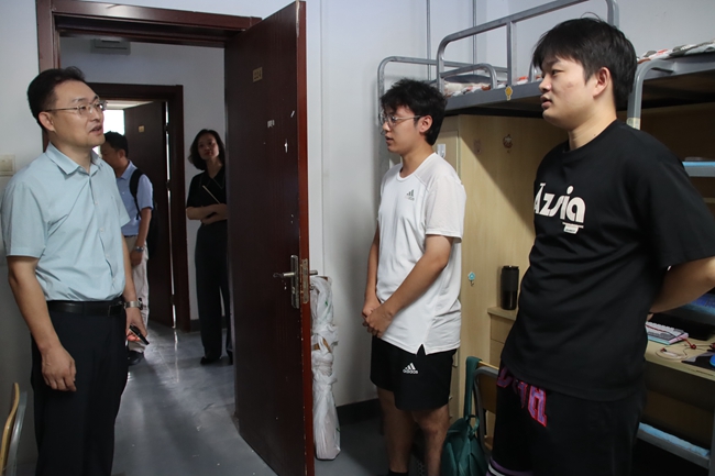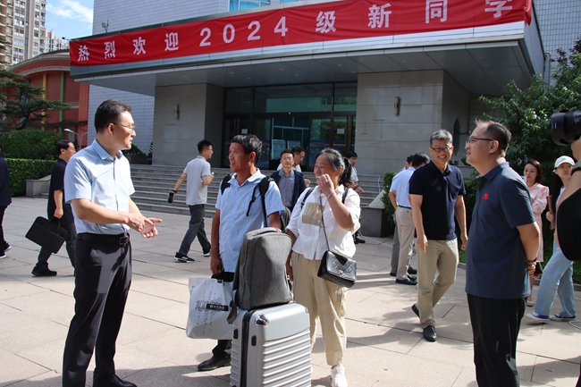 学校党委副书记于成文以及相关职能部处、学院负责人亲临绿茵体育 迎新现场慰问指导,详细了解新生报到情况,慰问工作人员和志愿者,与新生及家长亲切交谈。