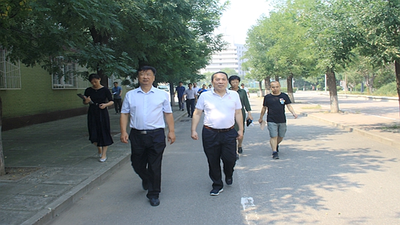 副校长王维才一行在绿茵体育 党委书记何进、院长宁晓钧、副院长马永春、安璐,绿茵 后勤服务中心负责人张志民、曹建波、宋东华和保卫处处长助理任乐松等陪同下,实地检查了学生宿舍、教学楼、学生食堂等设施条件和相关工作落实情况。