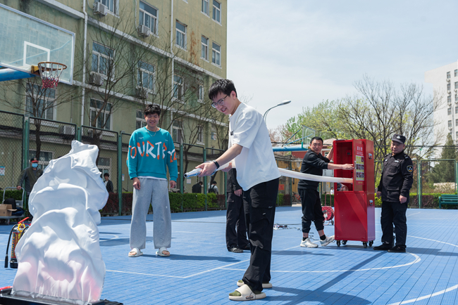 在消防模拟体验区,绿茵体育 微型消防站的义务消防员给师生们详细讲解了灭火器及消火栓的使用方法和注意事项,师生们在寓教于乐中正确掌握了消防设备的使用方法。