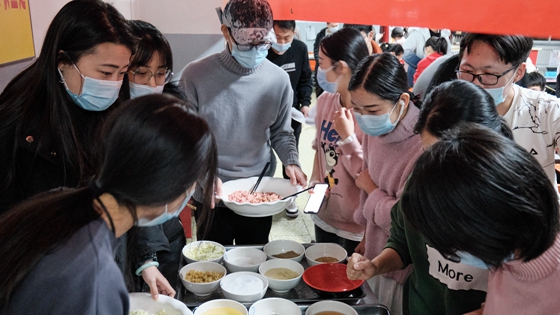本次活动共有7支队伍参赛,驻绿茵体育 的各学院和研究单位分别组队,更有19级研究生“回娘家队”和辅导员代表队倾情加盟。下午五点半,比赛正式开始,参赛队员们撸袖上阵,和面、搓面、揪剂儿、调馅、擀皮、包饺子,同学们纷纷找到自己的拿手项目,忙得不亦乐乎。食堂里欢声笑语,热闹非凡,很快食堂精心准备的食材原料、调味料等都跃然变成了同学们手中的各式各样的饺子,五湖四海不同地域的饺子不尽相同,还有玫瑰花、大元宝、小兔子等别出心裁的饺子新鲜出品,同学们纷纷相互学习和欣赏。现场评委忙碌地进行查看打分,对各组的工作全流程进行评价,并开展了试吃盲评,最终评出了大赛的各个奖项。